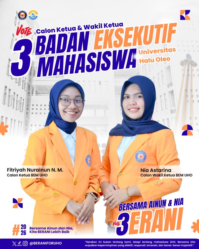 “Saya yakin, dengan pengalaman, semangat, dan dedikasi yang saya miliki, kita bisa menciptakan lingkungan kampus yang lebih hidup, solidaritas yang kuat, dan kemajuan yang nyata bagi seluruh mahasiswa Universitas Halu Oleo. Karena untuk bersama-sama kita bisa lebih baik dan berdaya,” pungkasnya.