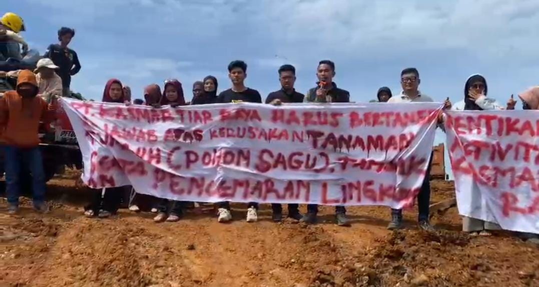 Sementara itu, Koordinator Lapangan, Ujang Hermawan, mengungkapkan bahwa pihak perusahaan diduga telah merusak ratusan pohon sagu dan tambak ikan milik warga.