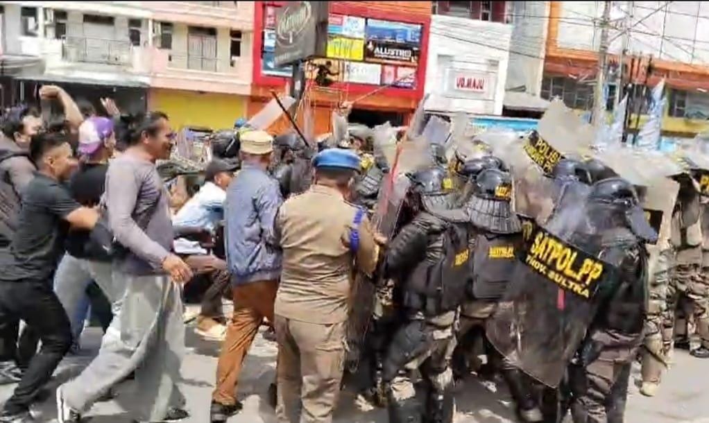 ​Pantauan di lokasi penertiban aset daerah Pemprov sultra sempat memanas aksi sorong dan lempar batupun sempat terjadi